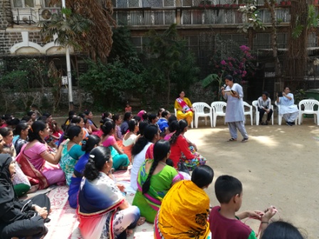 Garden school celebrated the International Women’s Day for the Garden School mothers. Dr. Jaya from IWA was the honorable chief guest and spoke on how to up bring their children with hygeiene, values, good education and nutrition. The celebration was followed by a cultural performance by our Sponsored Children and the students of third year B.A. from Elphinstone College. This was followed by games and distribution of snacks and gifts to all.. The moms were happy to be part of the program to celebrate their womanhood..