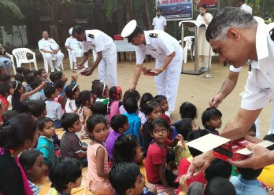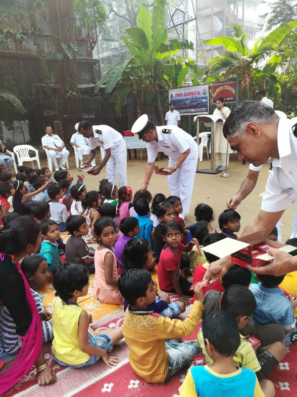 Ichapurti Ganga INS navy force donated a stainless steel plates and the ball holder to garden school. Sr.Asha Gaikwad welcomed Captain N.P Pradip commanding officer ,Lieutenant commander Lijo Thomas Joseph  and men of INS ganga  to Garden school were they hand over the gift to Sr.Sylvia Mascarenhas and Captain addressed the gathering and said some few words to the children.Sr.Sylvia gave the vote of thanks and we ended our short programme.