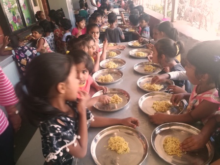 Children enjoying the food .