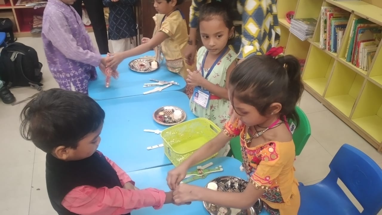 The girls of Garden school  were invited to Campion School to tie the Rakhi to their Kg boys.